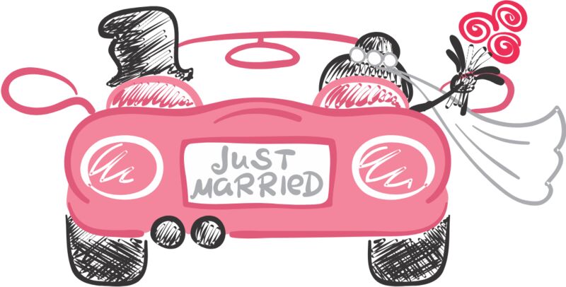 Cartoon Wedding Groom Bride Car Just Married 1
